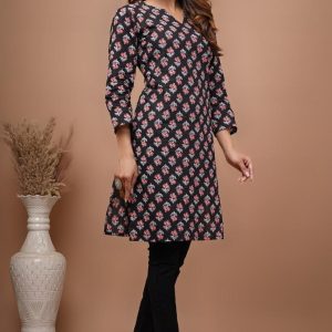 This blue colour long kurti embedded with flower makes you fresh.